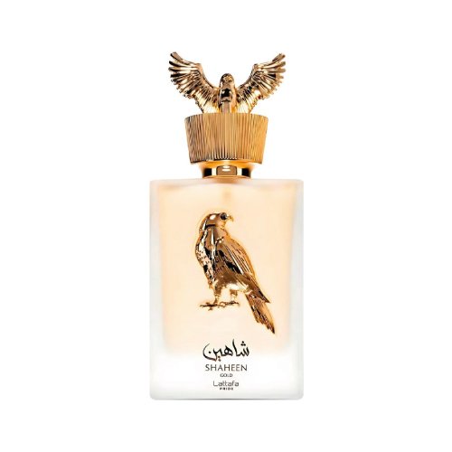 Perfume Lattafa Shaheen Gold es un perfume unisex con notas de piña, lavanda y vainilla. Fragancia frutal, elegante y envolvente, ideal para día y noche.